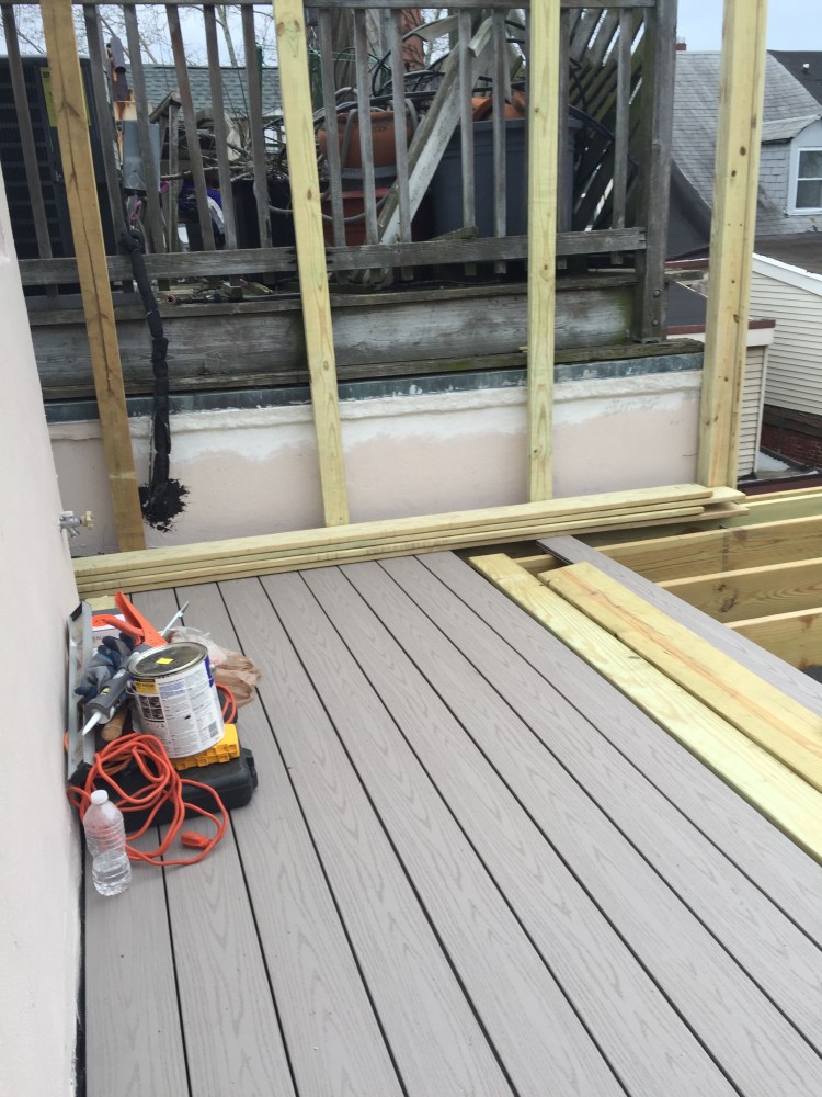 Because of the way the original deck had been installed (fast and cheap), it could not be taken apart and put back together. Bummer! I put up a craigslist ad for free used materials and a local church and farm were able to come pick up the dismantled decking materials to use in some community projects. Much better than the contractor hauling them away (for a fee) and dumping in a landfill!