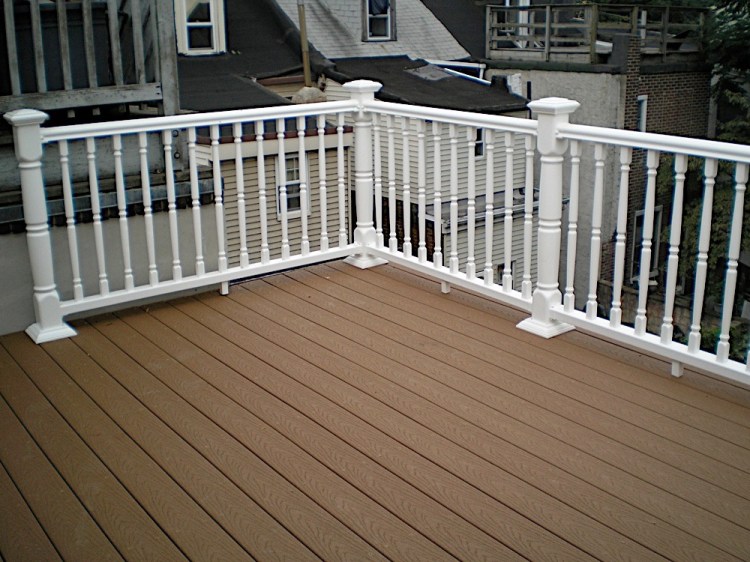 I did a lot of research about decking materials and ended up using an Azek deck board in gray from a local lumber shop and then customized the railings to be a combination of gray and white. I wanted post caps with lights but couldn’t bring myself to get the Azek caps at $120 a piece, so I ordered some solar caps on Amazon for less than half and love the way they look.